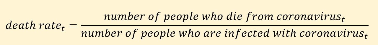 Hopefully we are not all going to die of the coronavirus. What we are all watching – and what we should be watching – is how many people are dying as a percentage of those infected and how that rate changes over time.